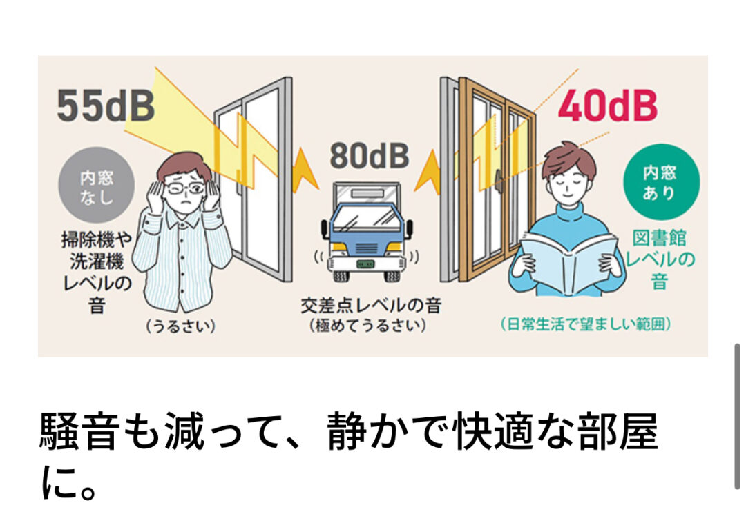 外からの音を15dB低減。騒音が半分以下に聞こえる防音効果です(人間の耳は、10dB下がれば、音が約半分に減ったように感じると言われています)
